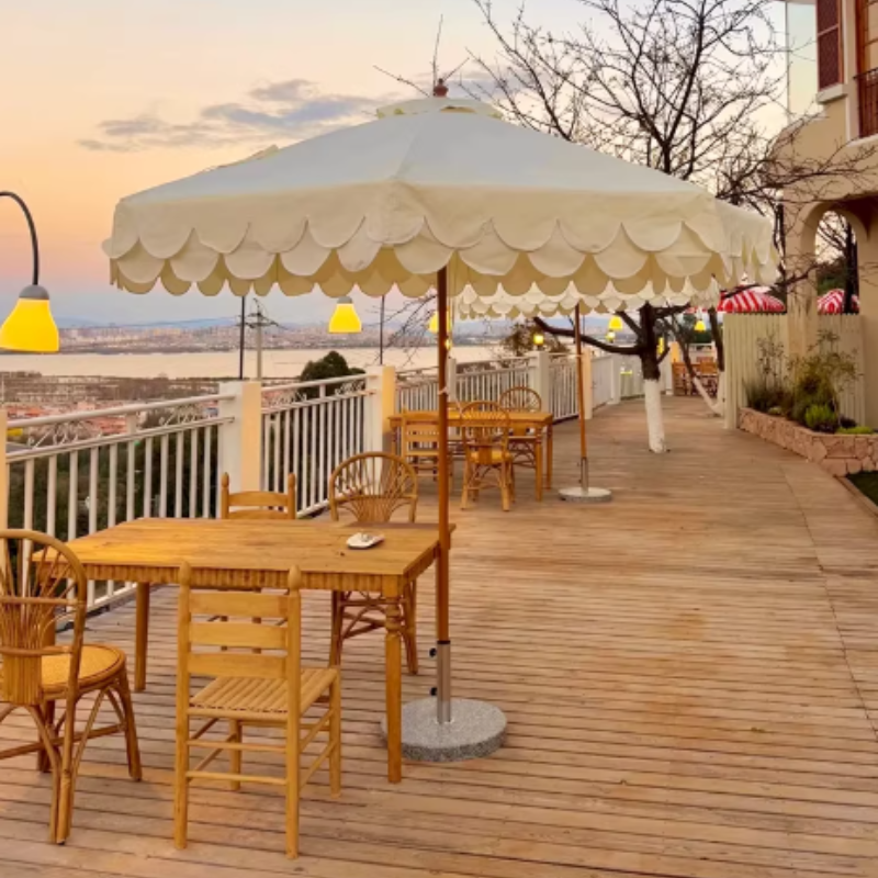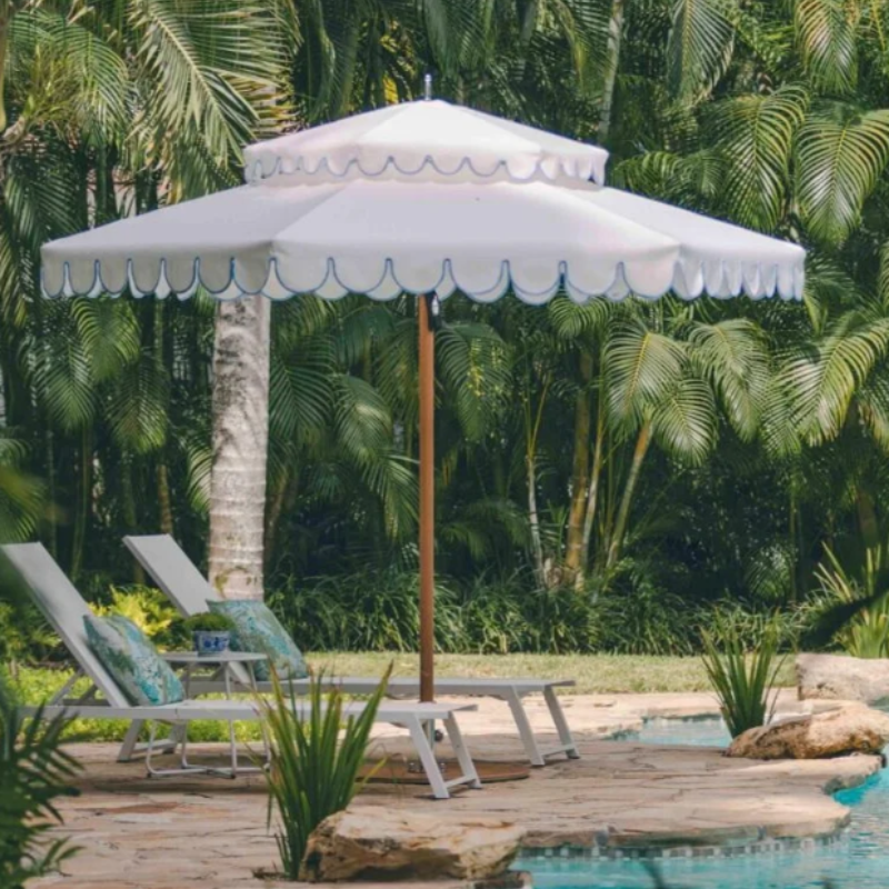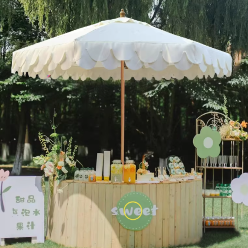 Parapluie grand format blanc à double couche avec design ondulé LS Costom | Parasol de plage, de marché et de mariage, parasol extérieur, vente en gros