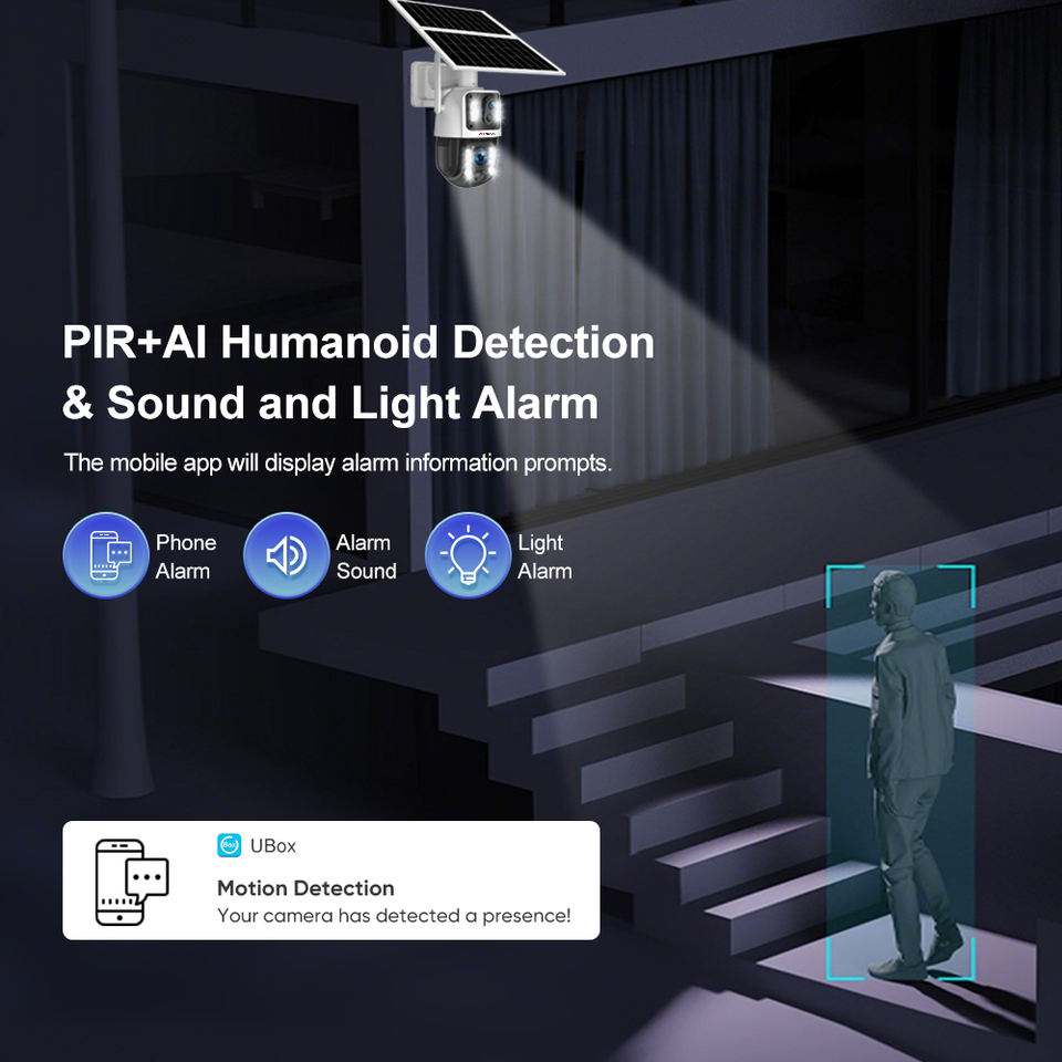 Assistance 1:Alarme de détection humanoïde double PIR + Ai et enregistrement vidéo