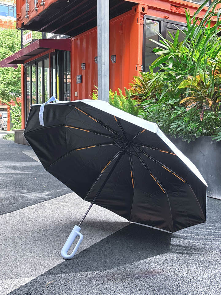 Parapluie Inversé Compact LS03 à Boucle d'Anneau, avec Bande Réfléchissante de Sécurité, Pliage Automatique pour la Pluie et le Soleil, Protection Anti-UV et Coupe-Vent