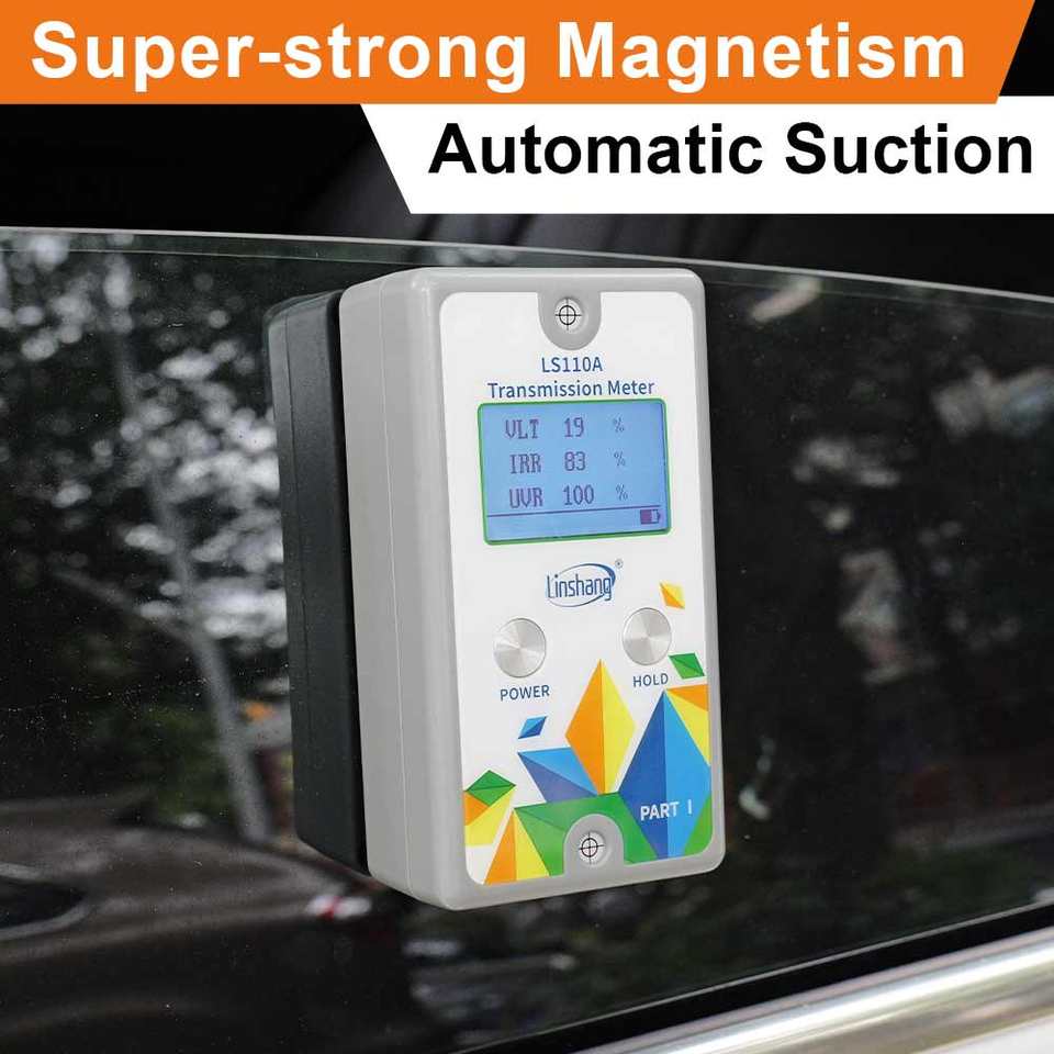 Le compteur de transmission lumineuse LS110A peut tester VLT, IRR, UVR, adapté aux tests sur verre déjà installé ou sur matériaux plus volumineux.