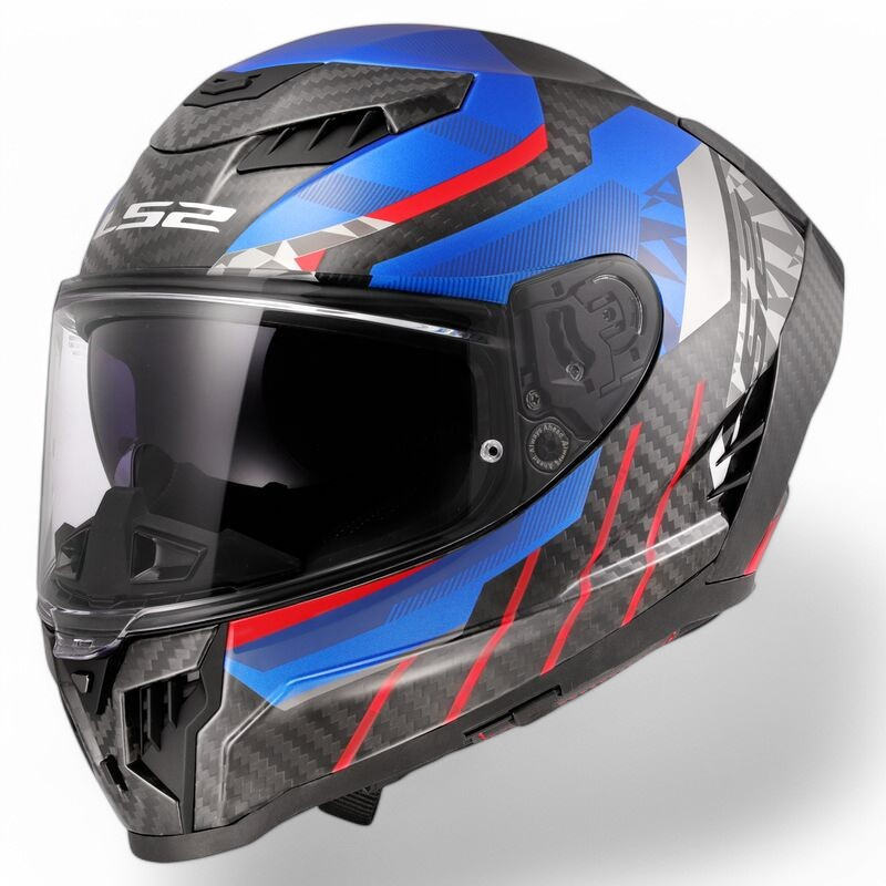 Casque de course en fibre de carbone LS2 FF807, intégral, rabattable, double visière, taille XL, avec boîte de rangement, état neuf
