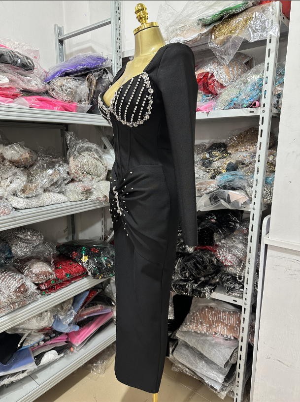 LS2672 Luxury Quality Women Clothing New Sexy Long Sleeve Diamond Party Dress Beaded Diamond Bandage Dress