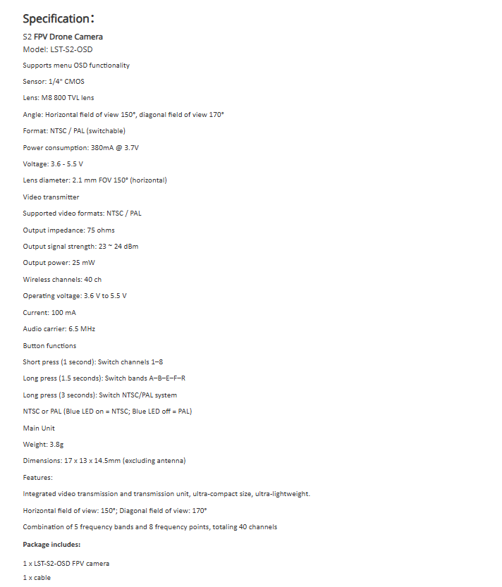 Caractéristique:Compatible FPV
