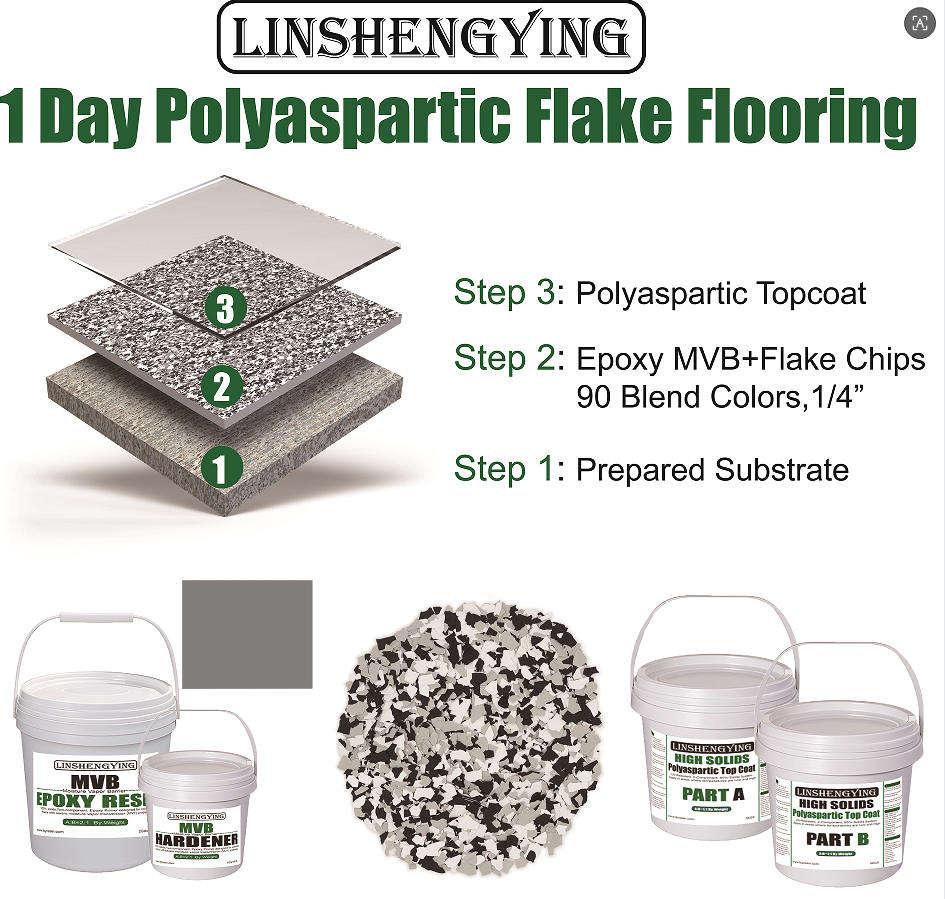 LSY 2:1 100% Solides Époxy Barrière Contre l'Humidité et les Vapeurs (MVB) avec des Flocons de Mélange Domino de 1/4 po pour le Revêtement de Sol en Béton de Garage