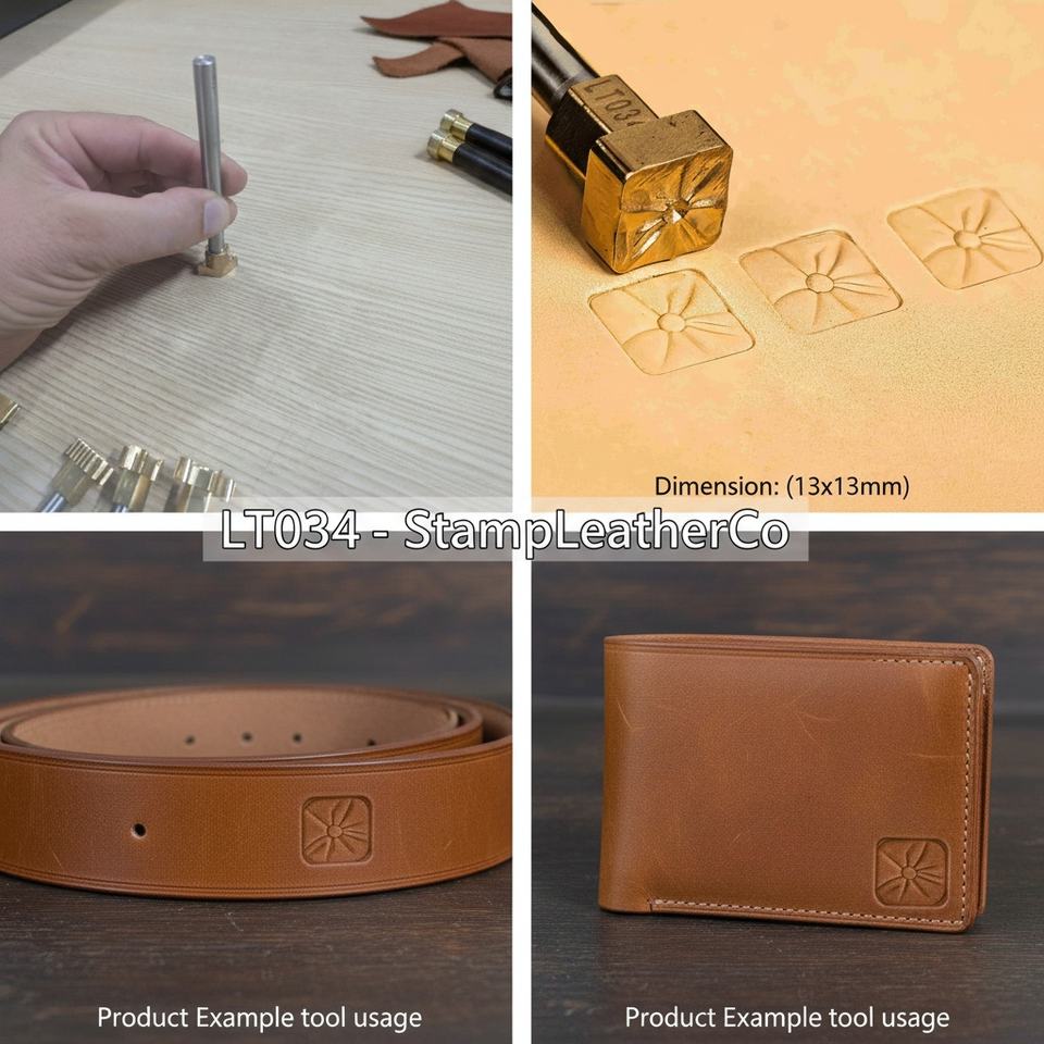 LT034 Tampon cuir géométrique carré motif pétale 13x13mm (1/2 "x1/2") Artisanat du cuir