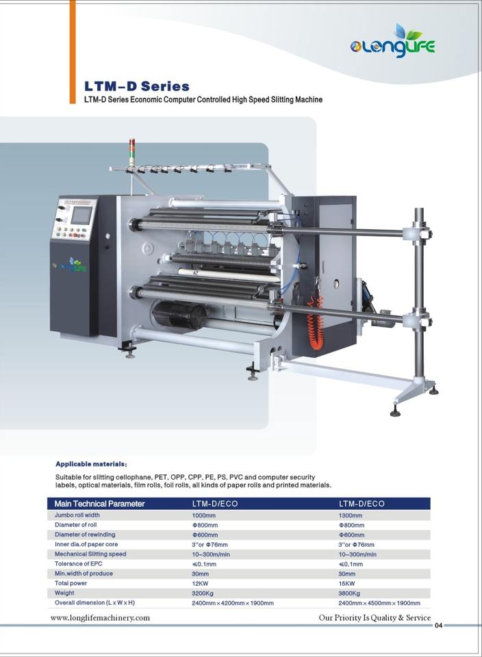 Dérouleur-ensacheuse LTM D-M2 pour conversion bobine à bobine de PET haute vitesse, découpe et rembobinage, avec support d'impression et contrôle par ordinateur Delta PLC HMI