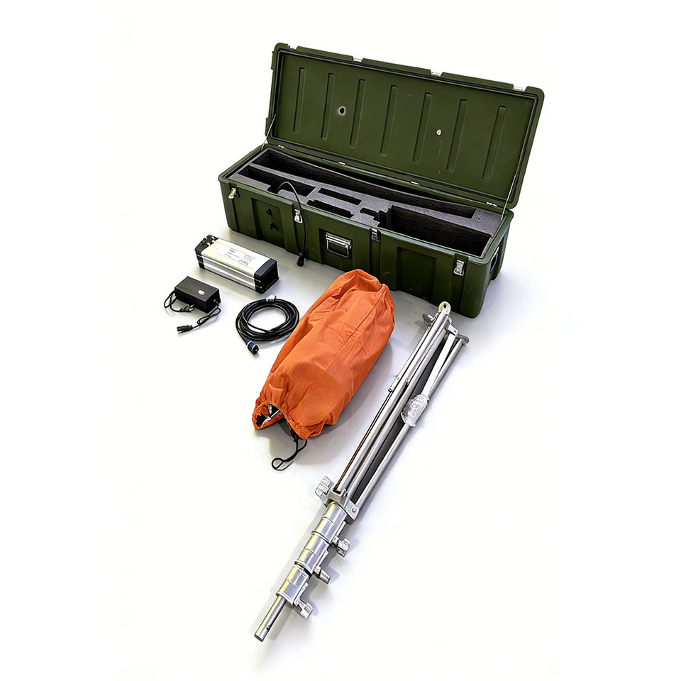 Tour d'éclairage portable LUDWIG 4,5 m 240 W à LED, alimentée par batterie, avec trépied et ballon lumineux pour éclairage extérieur