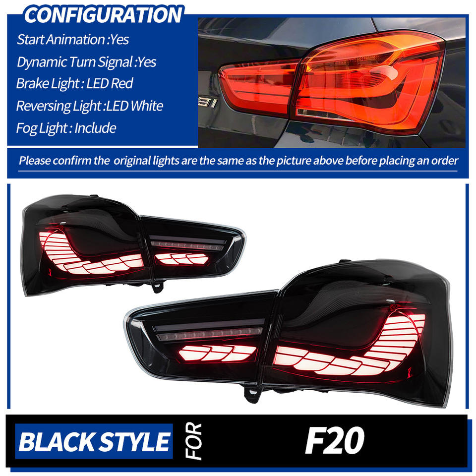 LUFENG Nouveau style phares arrière pour BMW Série 1 F20 F21, style GTS, ensemble de feux arrière, design rouge fumé, vente chaude