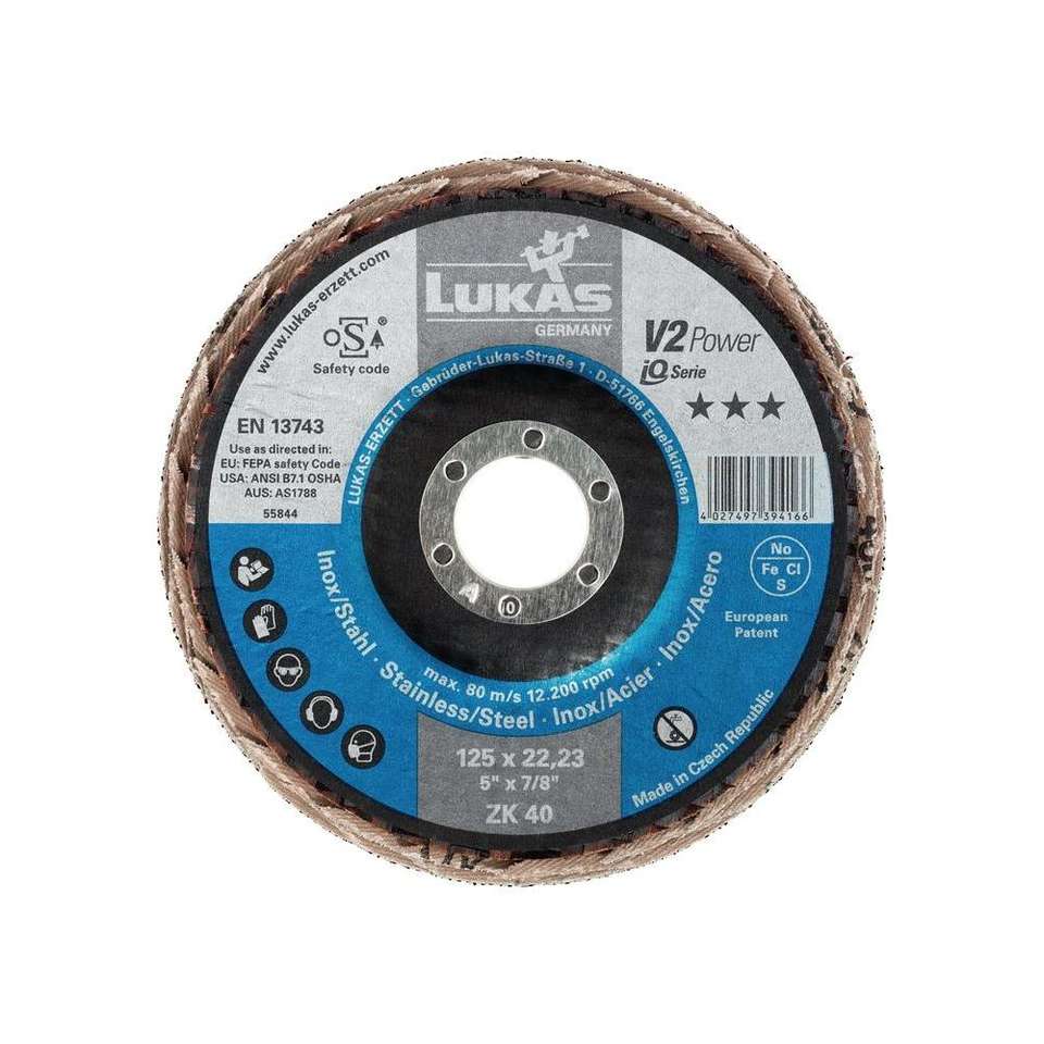 LUKAS Disque en éventail V2 POWER ZK dm 125 mm granulation 40 acier plat zirconium corindon
