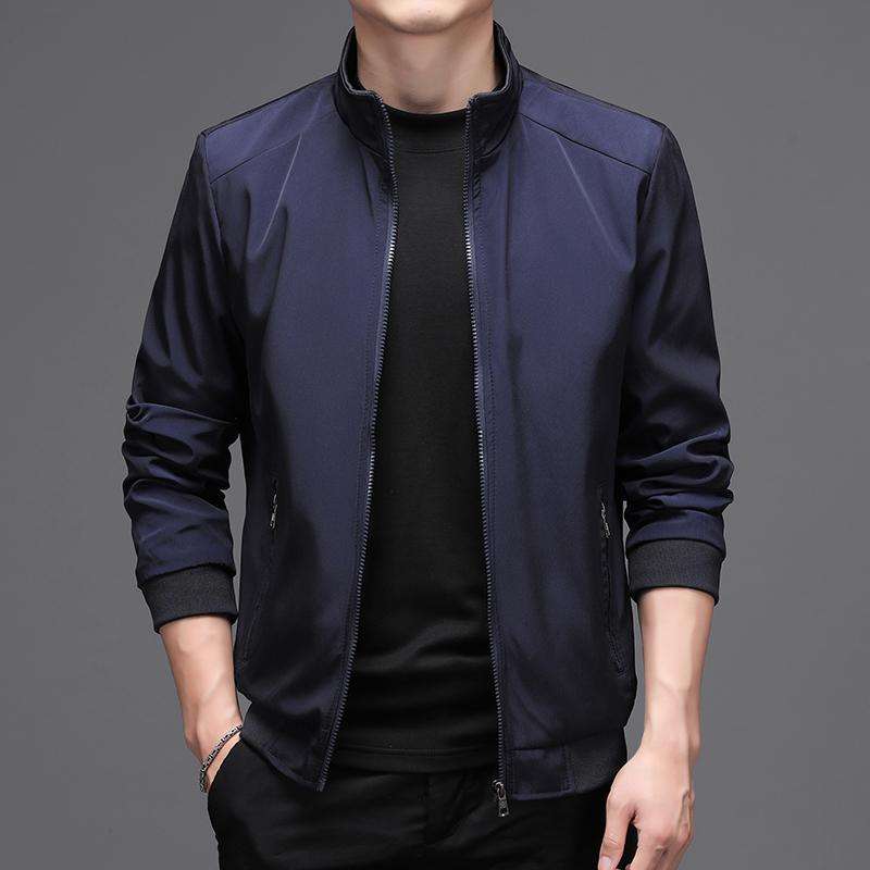 LUKER CMSS Printemps Été Hommes Vestes d'affaires solides Hommes Vestes minces Manteaux Casual Hommes Outerwear Male Coat Bomber Jacket - Blu