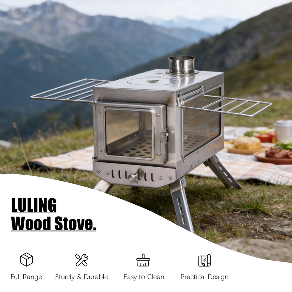 Réchaud de camping portable en céramique, verre et acier inoxydable avec grille pour la cuisson et le chauffage en plein air