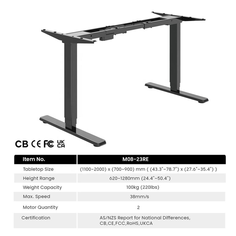 Bureau debout moderne LUMI LEGEND à double moteur, réglable en hauteur, cadre noir, mobilier de bureau, table d'ordinateur