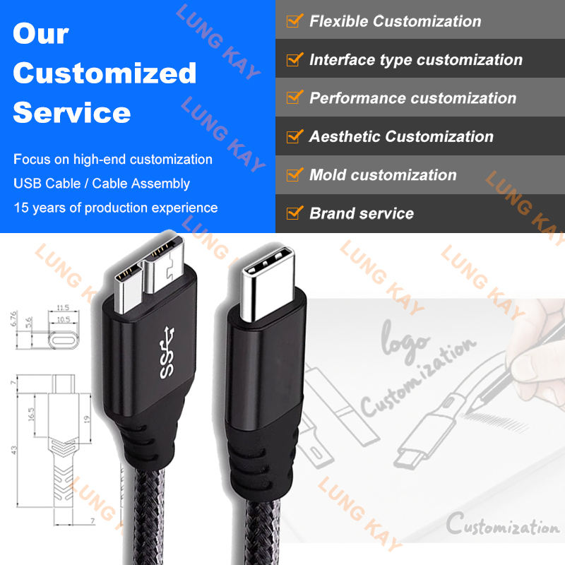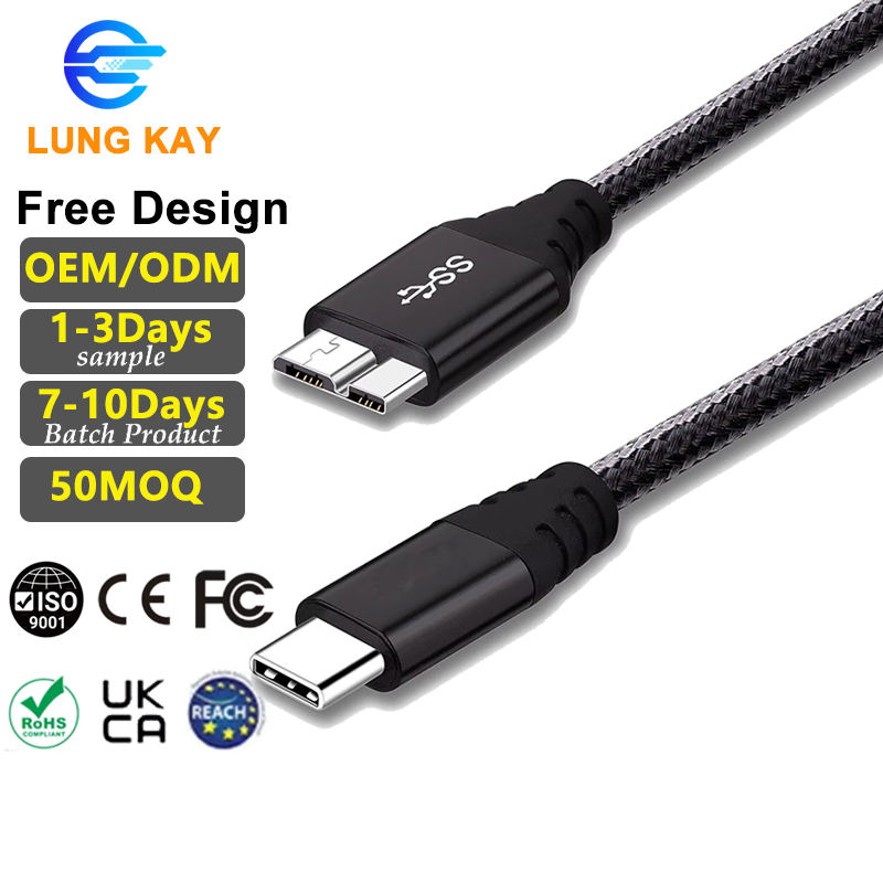 Câble USB-C vers USB 3.0 Micro-B LUNG KAY 1M 2M 3M, transfert de données 5 Gbps, gaine en nylon, pour disque dur et MacBook