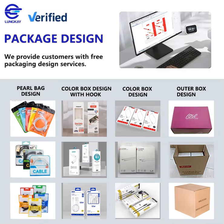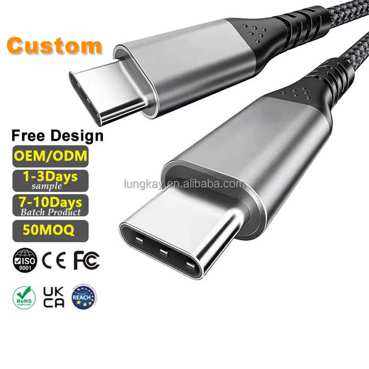 LUNG KAY 1m 2m USB Type-C Cable PD 100W Fast Charging 20Gbps Data Transfer Usb c to Usb c Cable for Mobile Phones Power Banks