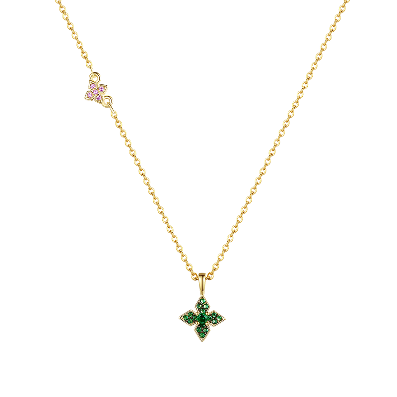 LUOTEEMI Collier à pendentifs en zirconium cubique multicolore à quatre feuilles Design floral tendance Matériau en laiton pour la fête par les femmes