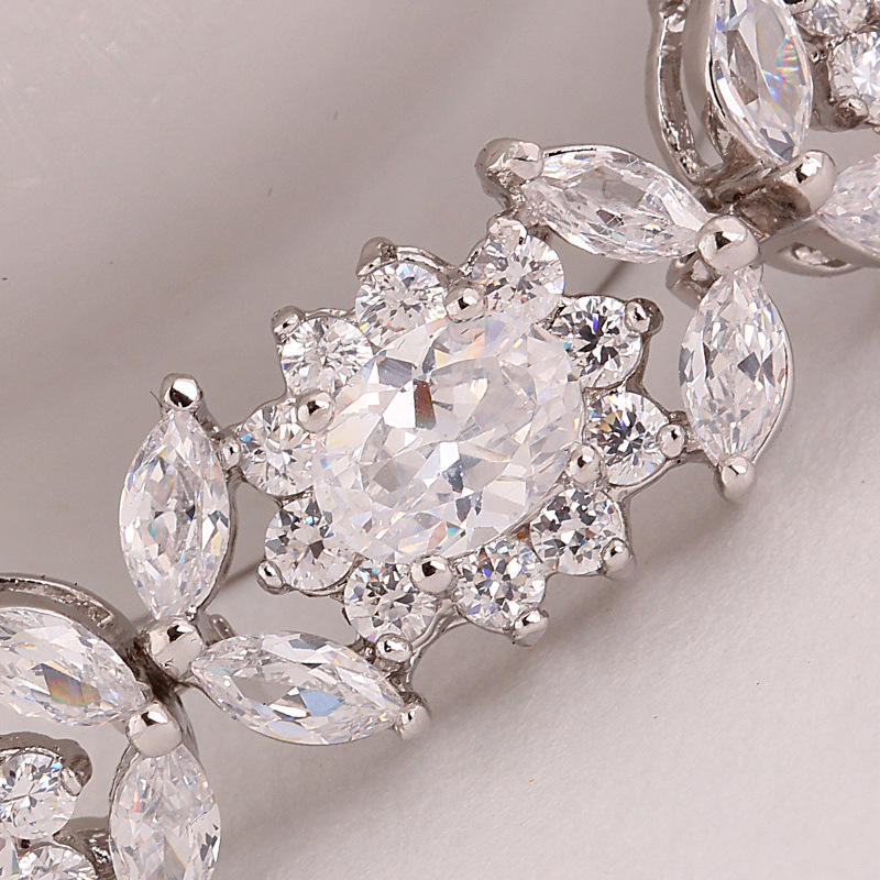Bracelet de luxe pour femme LUOTEEMI, plaqué rhodium, design fleur de reine, serti de zircon cubique étincelant, bijoux de mariage tendance