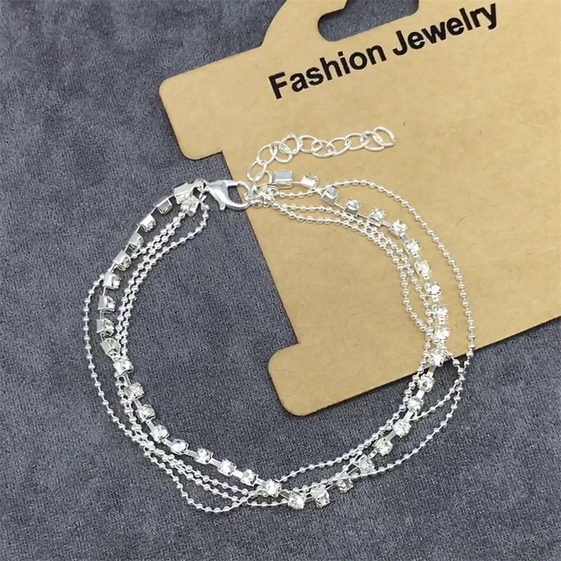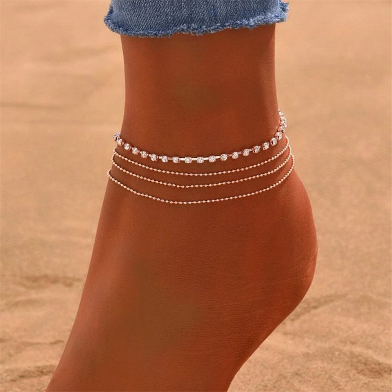 LUOYAN Bracelets de cheville de Bohème à plusieurs niveaux en cristal avec strass et chaîne pour bijoux de pieds de plage