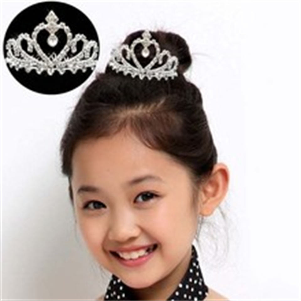 LUOYAN Mode Enfant Coeur Strass Couvre-chef Cheveux Courts Longs Complément Couronnes Argent avec Peigne
