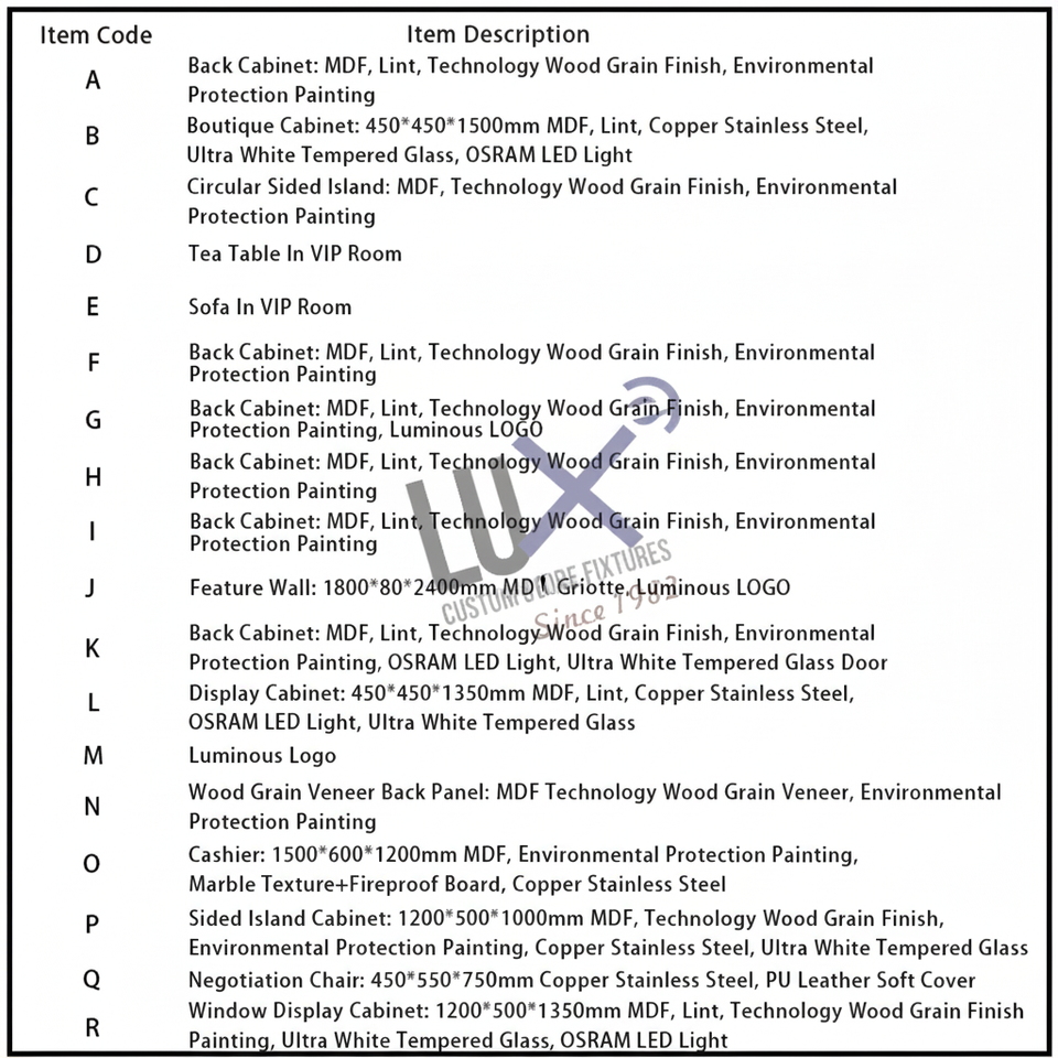 Vitrine de présentation de bijoux LUX de haute qualité, or et argent, primée, avec garantie de 5 ans pour la conception intérieure des boutiques et des magasins
