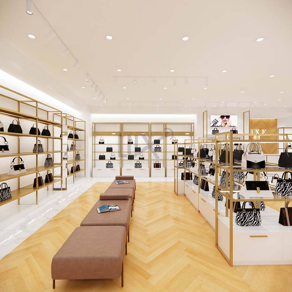 Shinlux Design — présentoir de sacs à main, meuble de magasin populaire, présentoir personnalisé, armoire d'exposition