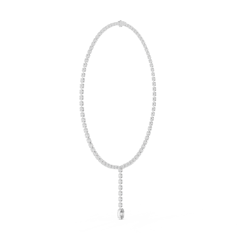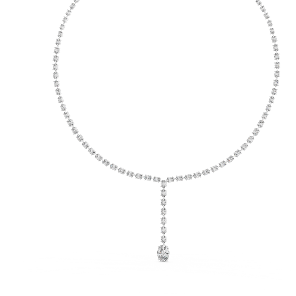 Collier Lariat en Or Blanc 18 carats Plaqué Rhodium avec Diamants de Laboratoire Taille Ovale pour Fêtes, Mariages, Événements Glamour et Cadeaux