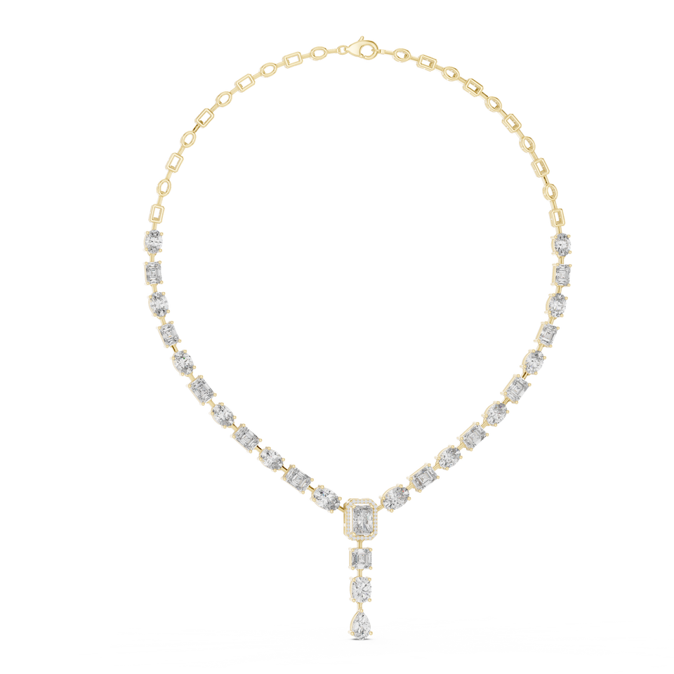 Collier Pendentif Rivière en Or Jaune 18 carats Plaqué Rhodium, Taille Émeraude, avec Pierres Latérales en Diamants de Laboratoire Certifiés Couleur E