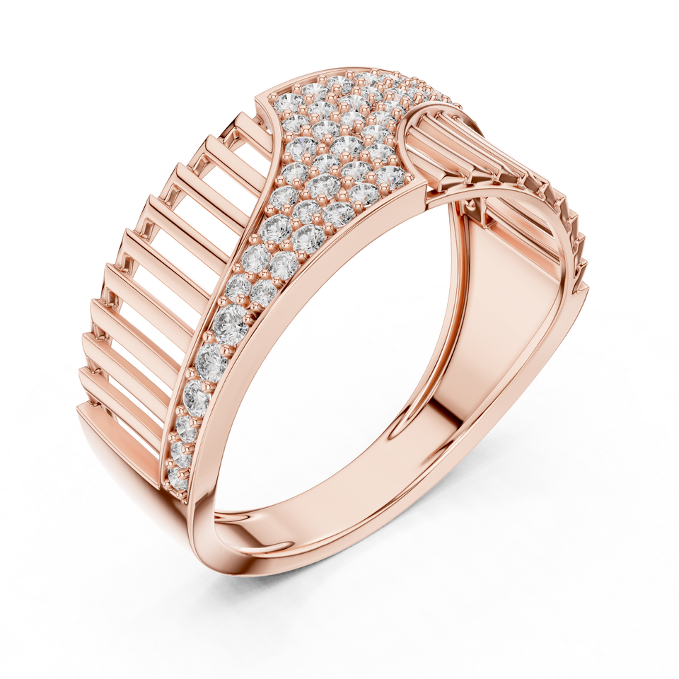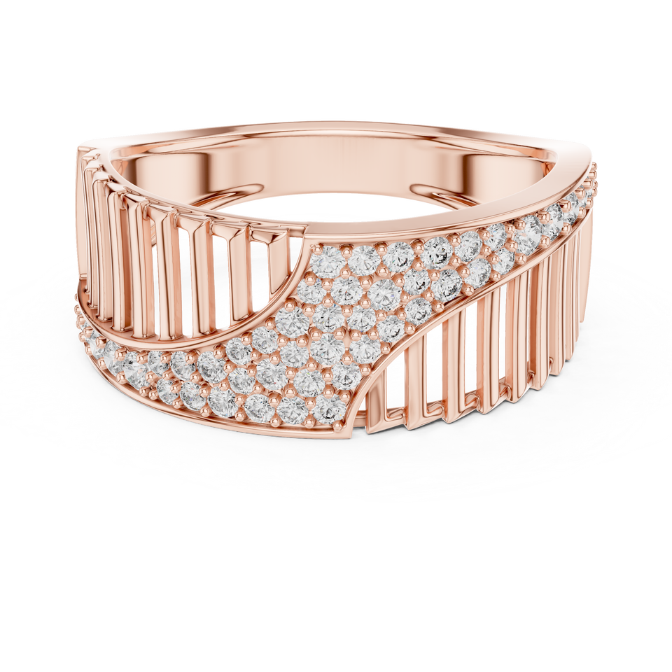 Bague LUXE CASCADE en or rose 18 carats plaqué rhodium avec diamant de laboratoire taillé, style minimaliste, pour mariage, fiançailles, cadeau, usage quotidien, bureau, homme