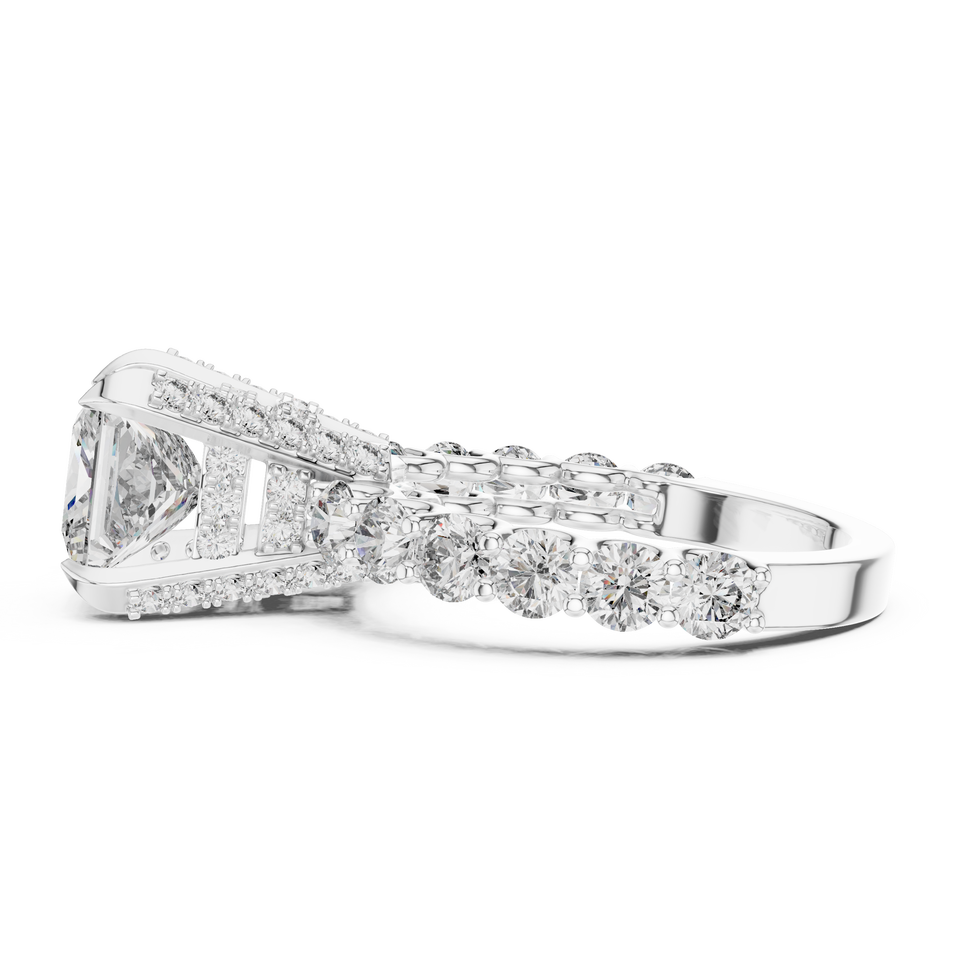 Bague de fiançailles de luxe en or blanc 18 carats plaqué rhodium, sertie de diamants de laboratoire taille princesse 2 carats et pierres latérales pavées, certifiée IGI