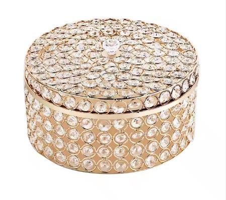 BOÎTE À BIDEAUX EN CRISTAL DE LUXE FORME RONDE TAILLE MOYENNE FINITION ARGENT BOÎTES À BIJOUX POUR CADEAU DÉCORATIF BOXS