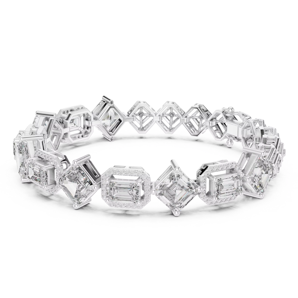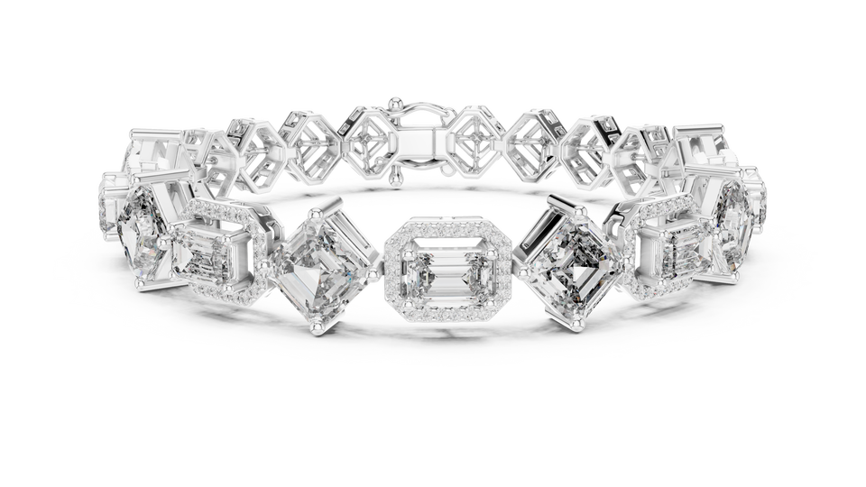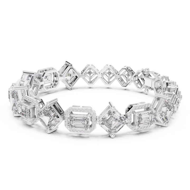 Bracelet de luxe en diamant de laboratoire taille émeraude, plaqué rhodium, avec fermoir double, en or blanc massif 18 carats, certifié, idéal pour offrir ou pour les occasions spéciales