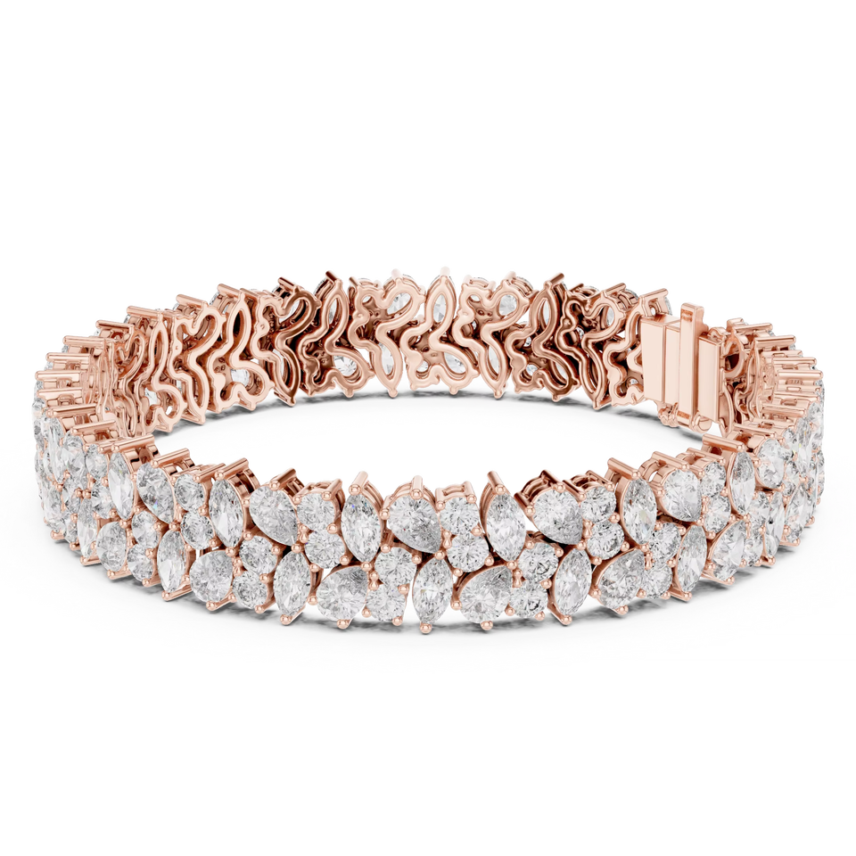 Ensemble de bracelets tendril en or rose 18 carats plaqué rhodium avec diamants de laboratoire de luxe à taille mixte, certifié pour usage quotidien, bureau, mariage, fiançailles