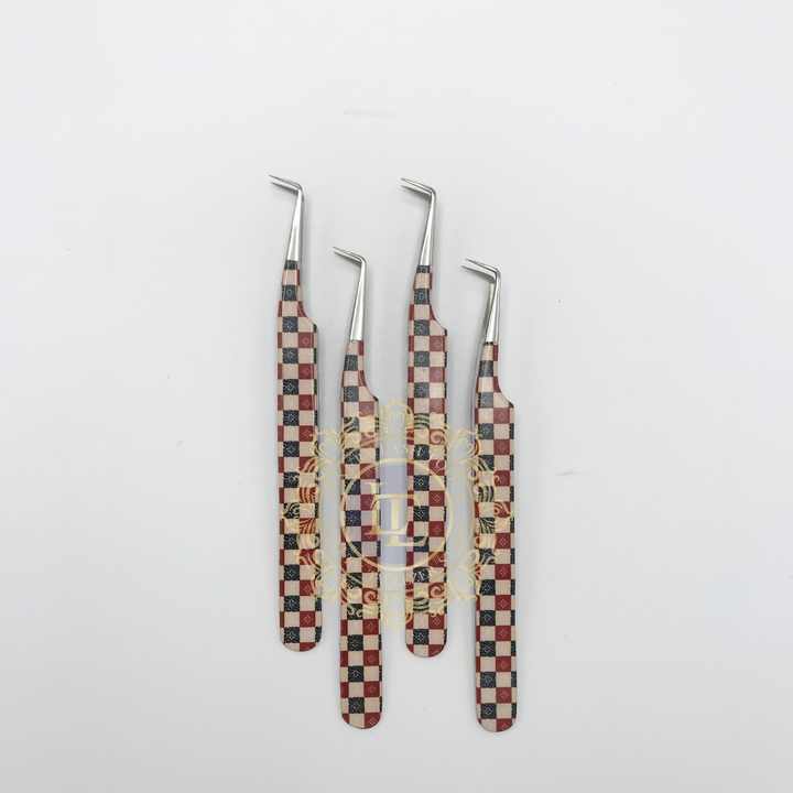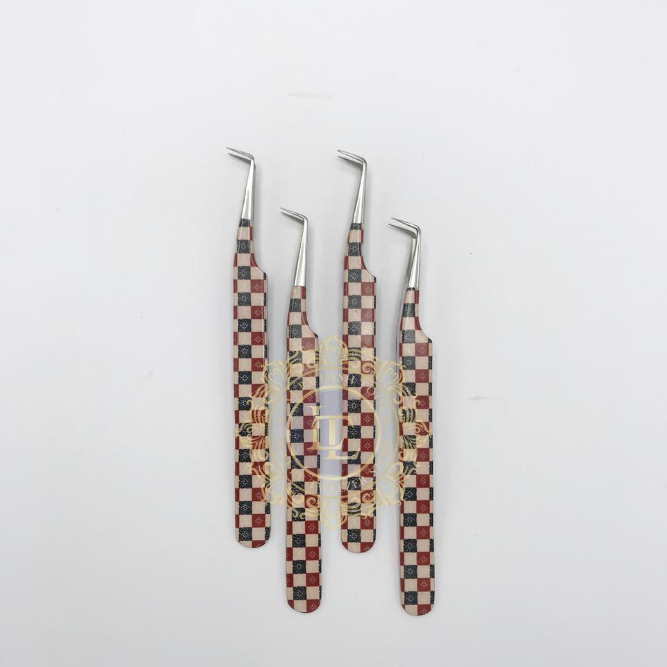 LUXURY LASH TOOLS Pince à cils en acier inoxydable avec logo personnalisé à 90 degrés Pointe en fibre d'argent Cils de revêtement de papier durable