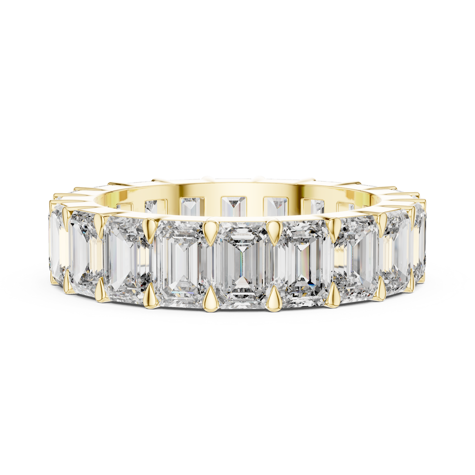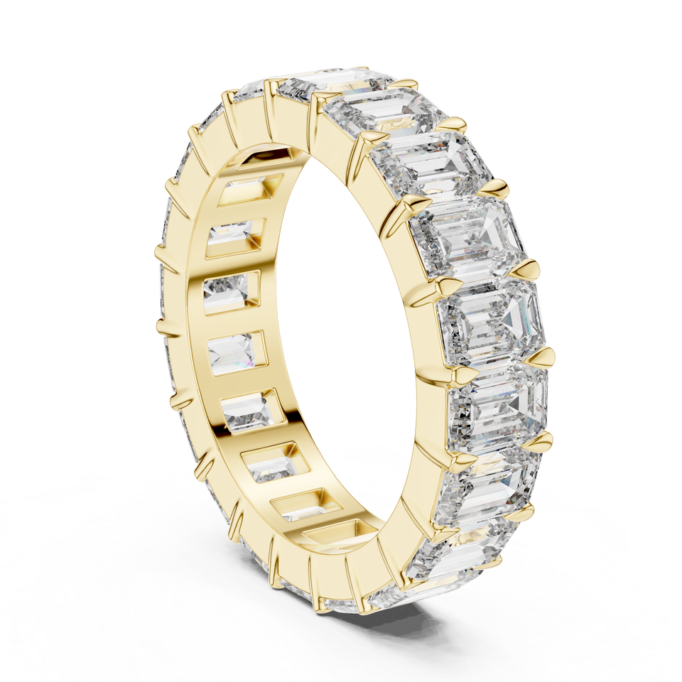 Bague Éternité de Luxe en Or Jaune 18 carats Plaqué Rhodium avec Diamants de Laboratoire Taille Émeraude et Pierres Latérales de 5,6 carats Certifiées IGI