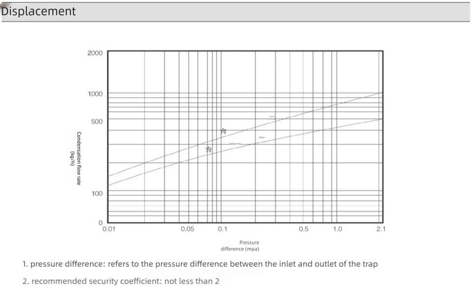 Capacité de drainage max:1500 kg/h @ 0.3MPa, 3000 kg/h @ 1.0MPa