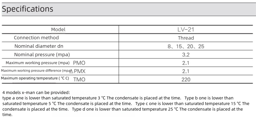 Nom du produit:LV-21 thermo statique de purgeur de vapeur équilibrée par pression