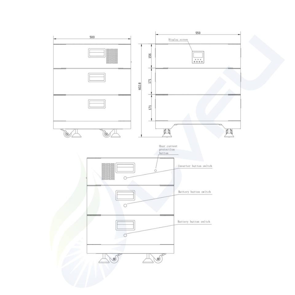 Batterie empilable LVFU à prix d'usine, qualité allemande, LiFePO4, pour usage domestique, 10KWh 20KWh 30KWh 40KWh, avec onduleur tout-en-un LFS51100, hybride réseau
