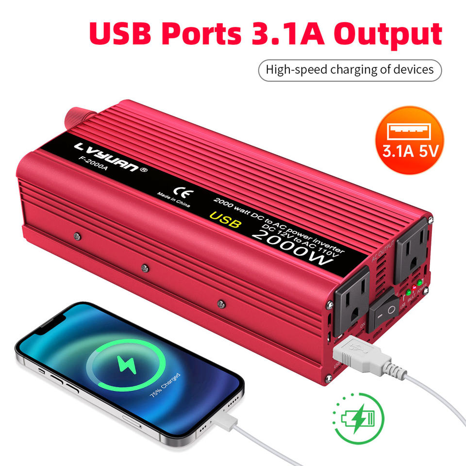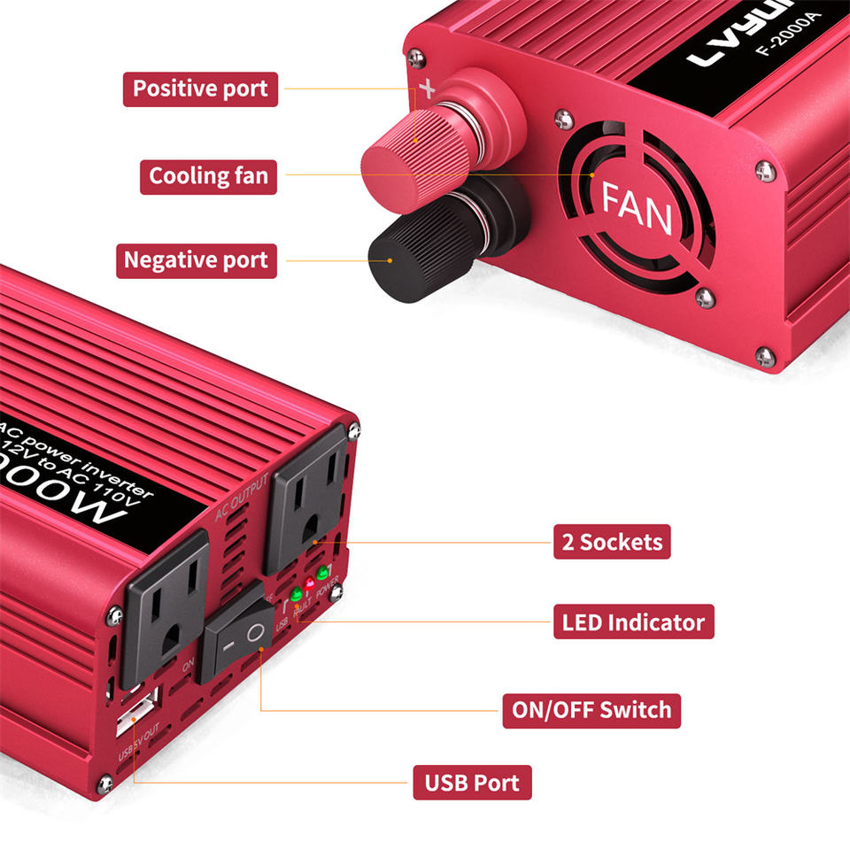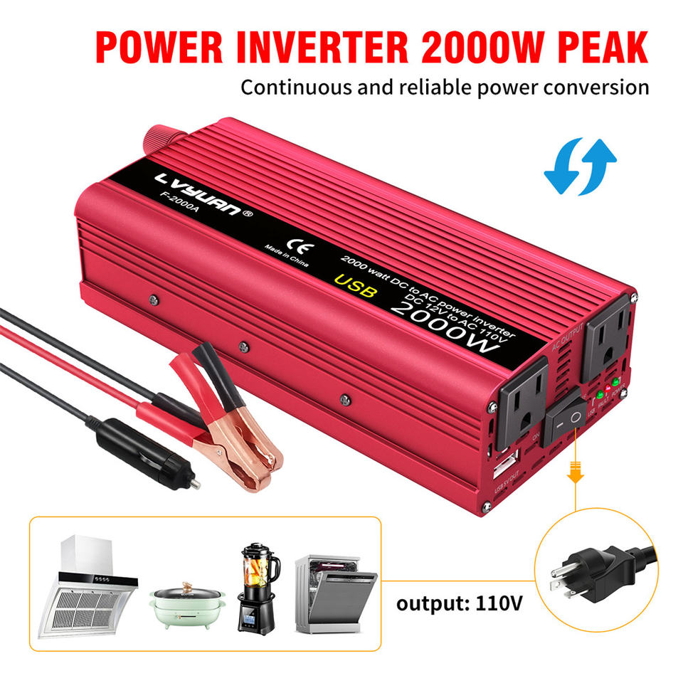 LVYUAN Onduleur de Puissance 800W 2000W 12V 110V Convertisseur DC 12V 24V vers AC 110V 220V