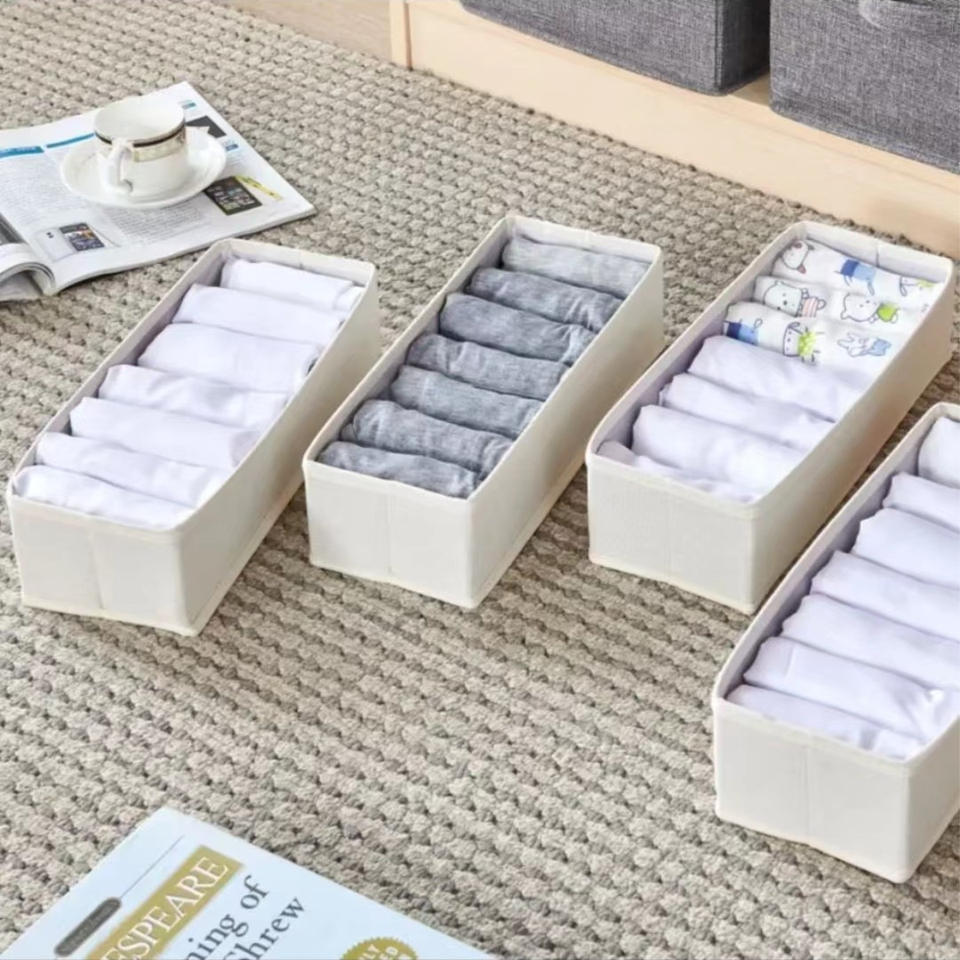Boîte de rangement pliable pour chaussettes LX-005, rectangulaire, beige, sans couvercle, empilable, pour tiroir, armoire, organiseur de sous-vêtements