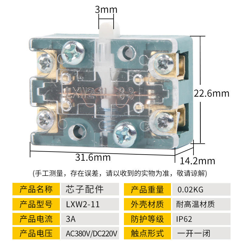 Micro-interrupteur LXW2-11, 3A AC380V DC220V IP62 SPST, composant de fin de course