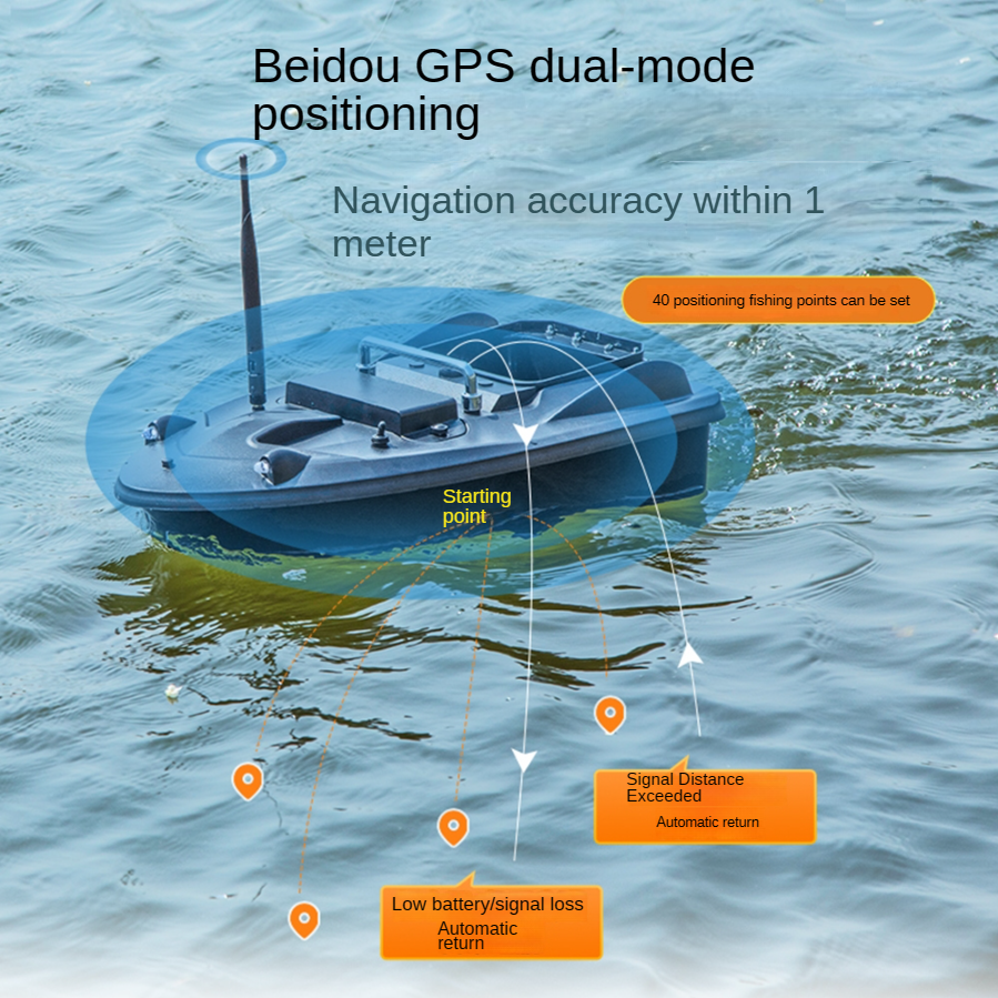 LY LY-01 Bateau de pêche à appât télécommandé Portée de 500 m Charge de 1,5 kg Pilote automatique GPS Batterie 12000mAh Noir 2,5 heures Pêche à la carpe