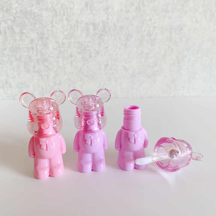 LZ Pack Promotion Prix Cartoon Mouse 2ml Porte-clés Lipgloss Tubes Rose Violet Plastique Cute Lip Gloss Tubes vides
