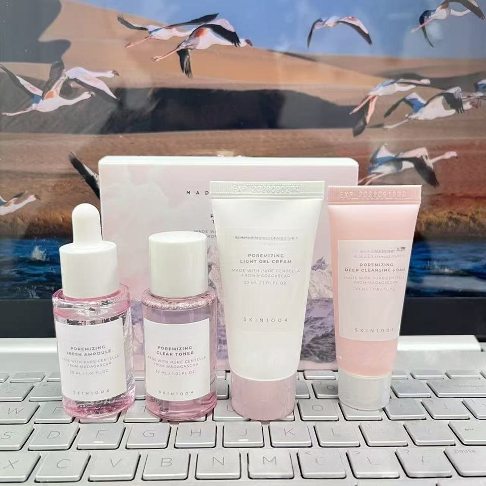 La Roche-Posay Angel Clear Texture Set de 4 pièces, coffret de voyage rose et bleu, nettoyant