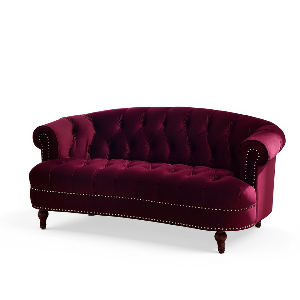 Canapé deux places La Rosa Victorian Chesterfield en velours bordeaux capitonné pour salon