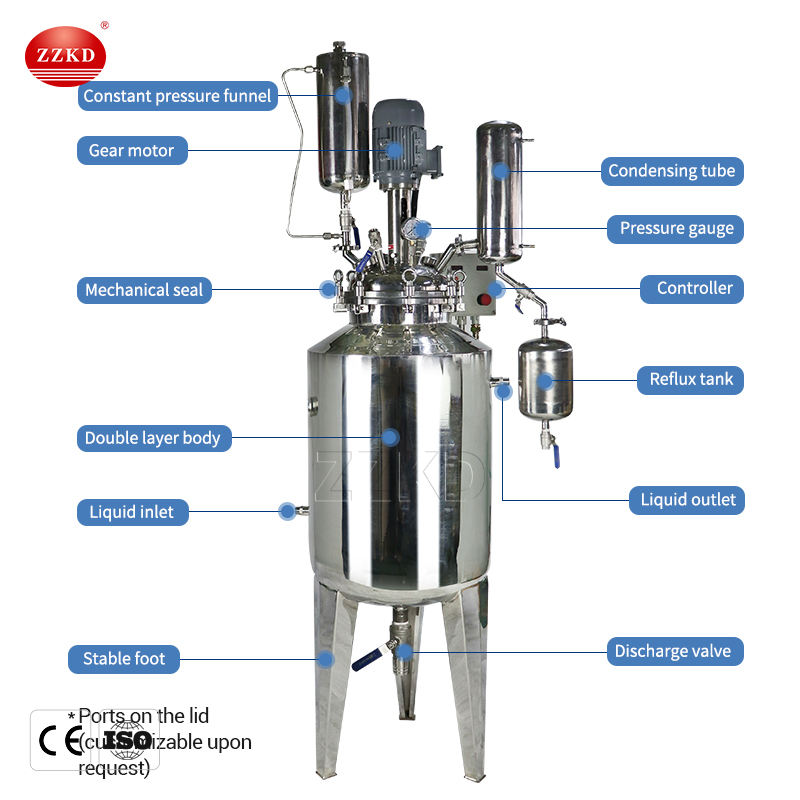 Réacteur chimique de décarboxylation de réservoir d'acier inoxydable de 10L 20L 50L 100L réacteur simple revêtu d'acier inoxydable
