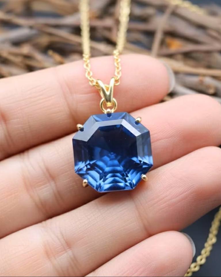 Collier pendentif octogonal en saphir bleu de laboratoire, bijoux minimalistes en or, cadeau de naissance de septembre pour elle, pendentif de laboratoire cultivé en laboratoire, minimaliste