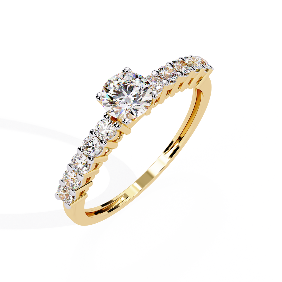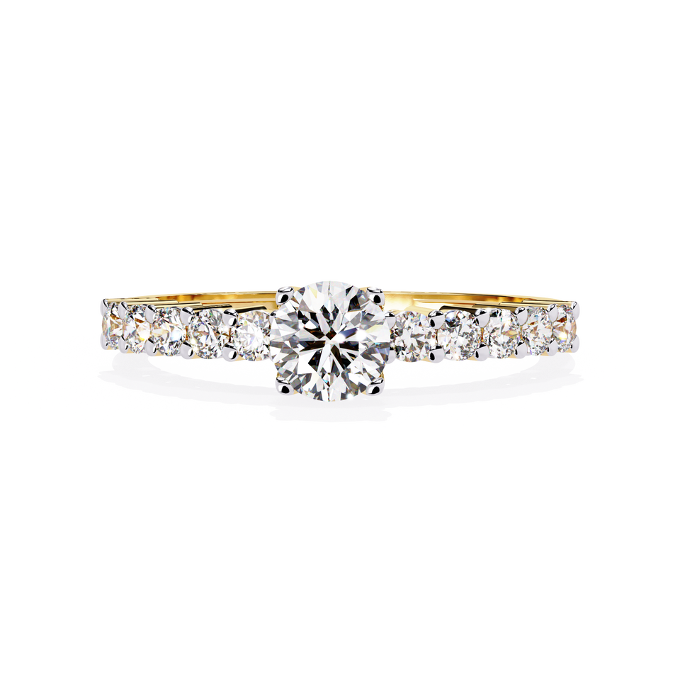 Bague de fiançailles en diamant rond brillant de 0,70 carat cultivé en laboratoire, sertie pavé en or jaune, certifiée IGI, Sheeraj Solitaire