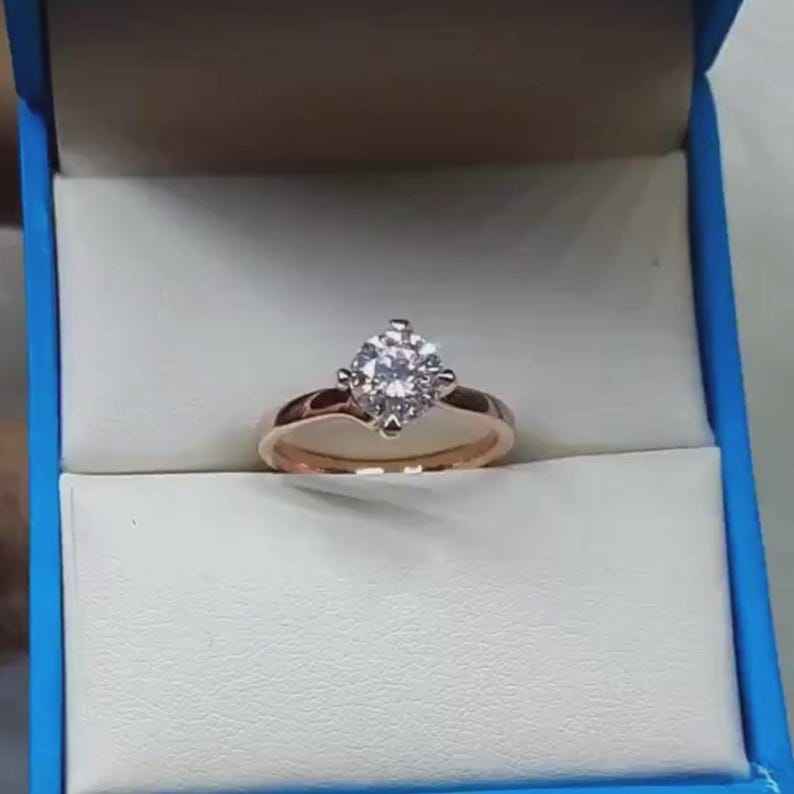 Bague solitaire cathédrale en or massif 14 carats avec diamant rond brillant de 1,01 carat cultivé en laboratoire pour femme, cadeau d'anniversaire pour partenaires