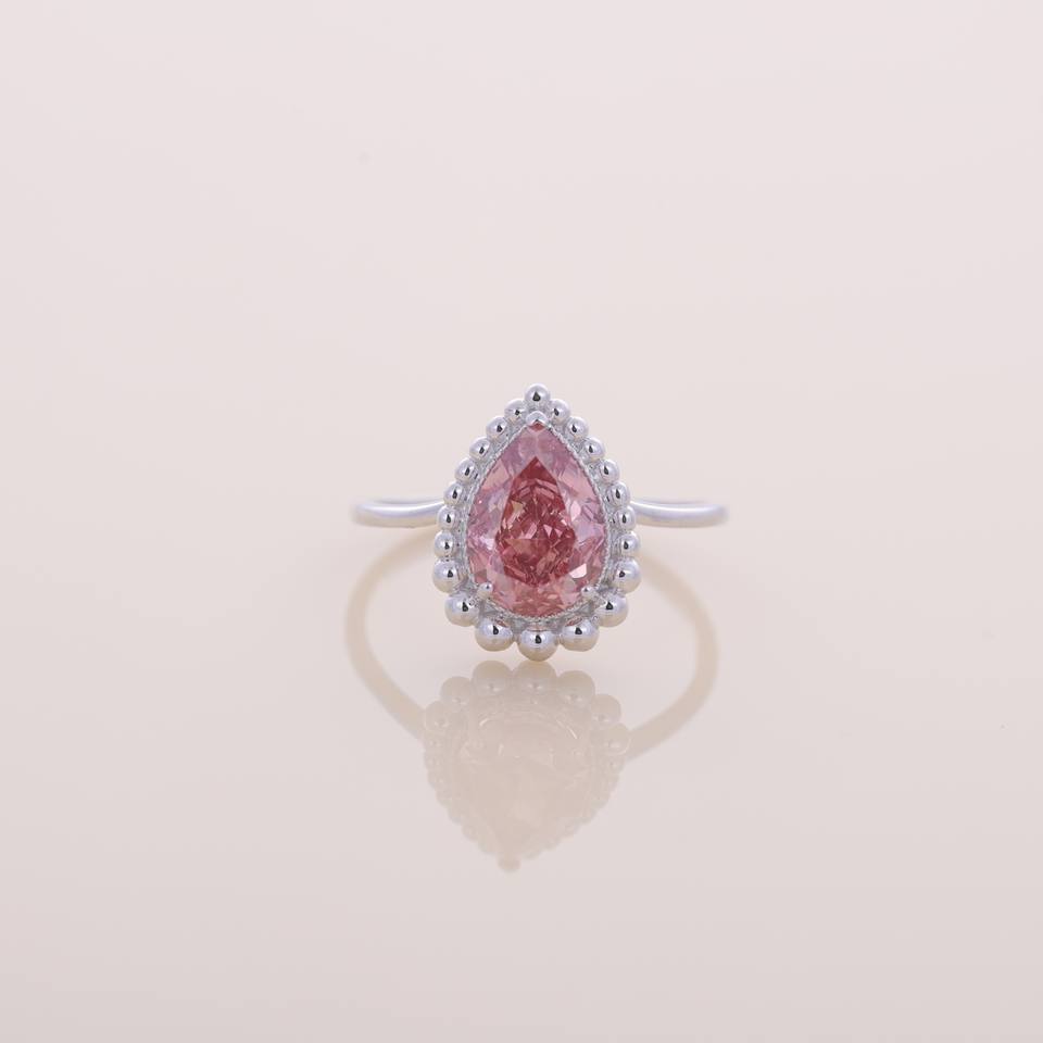 Bague en diamant rose poire de 1,5 carat cultivé en laboratoire, halo perlé, argent sterling 925 massif, bijoux