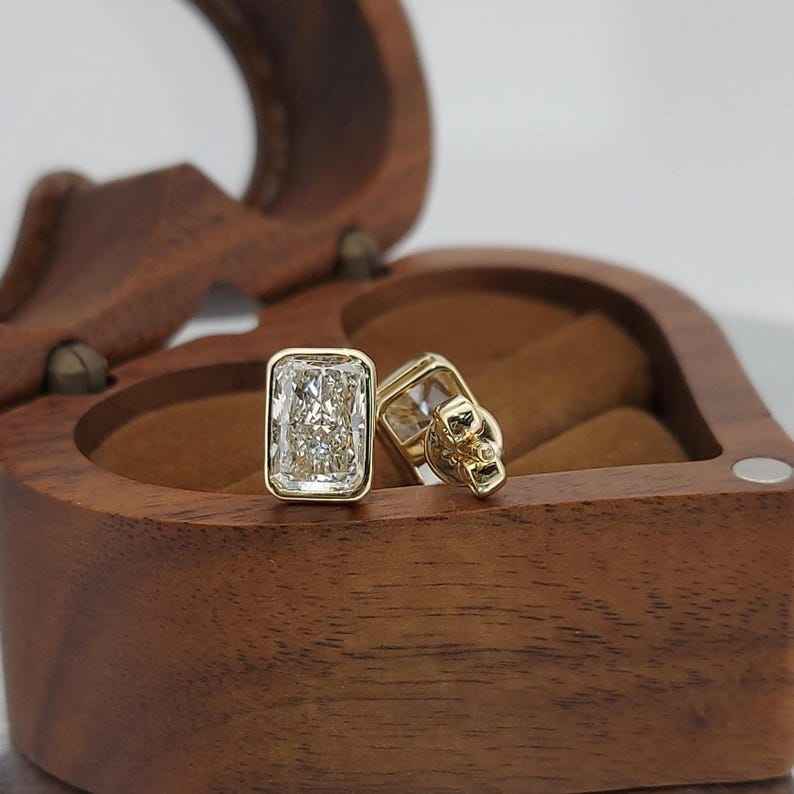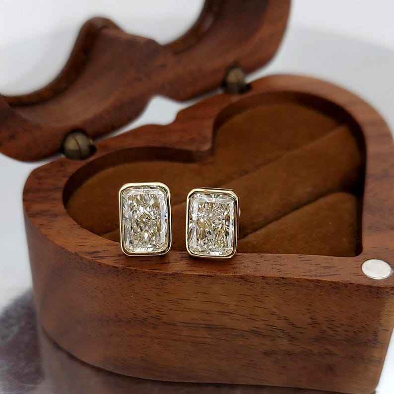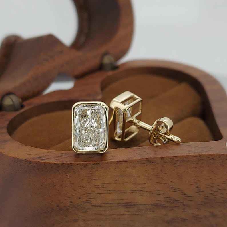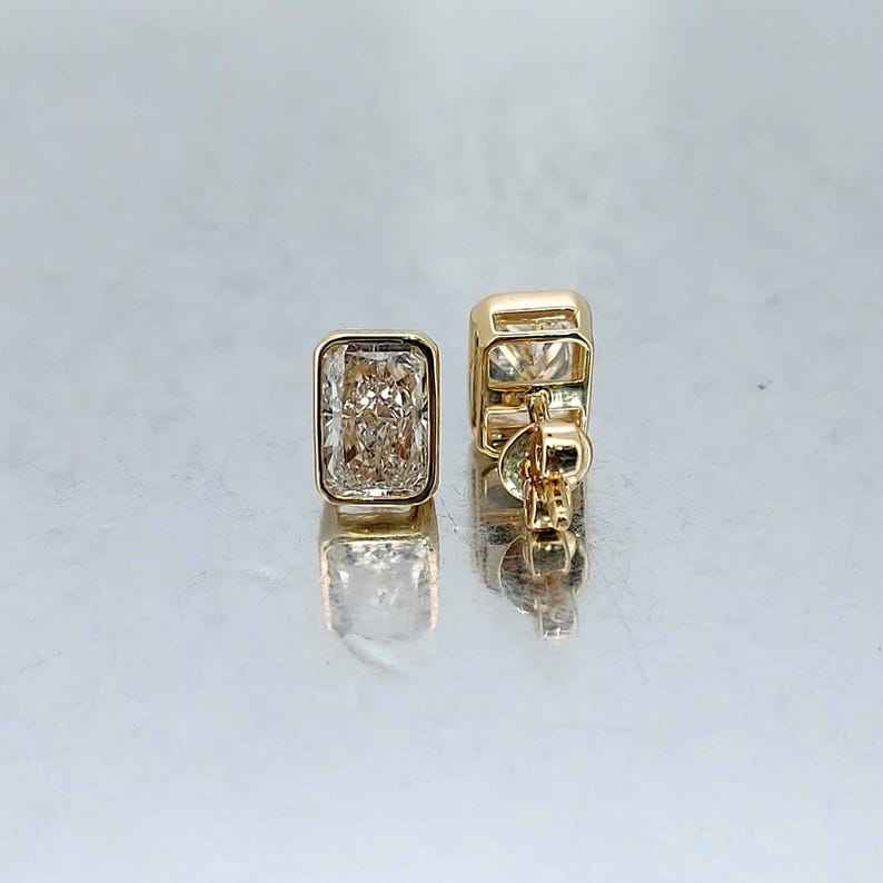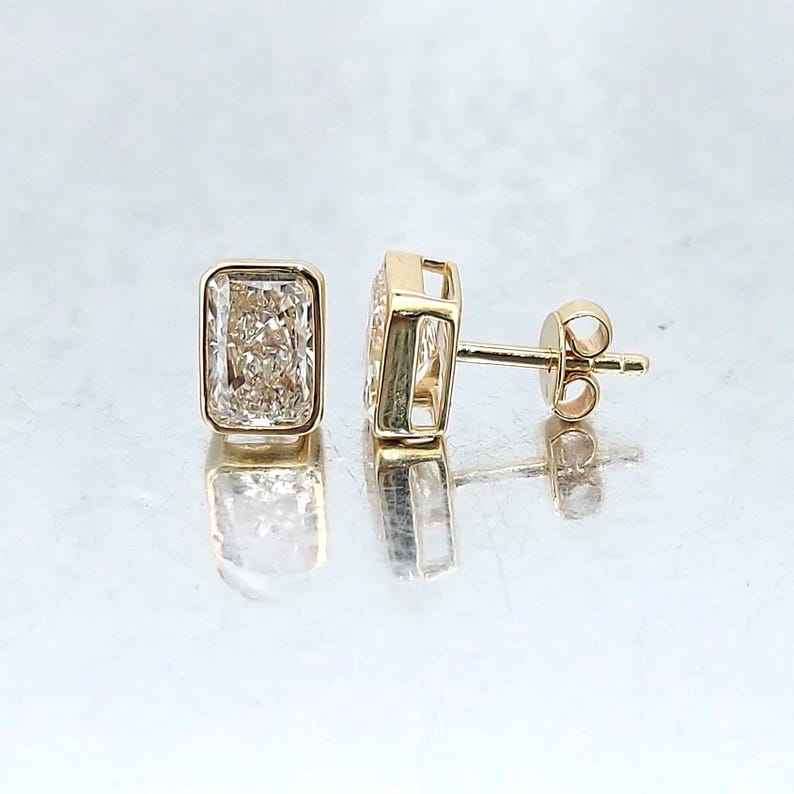 Boucles d'oreilles clous en diamants de laboratoire taille radiant de 2,00 carats chacun pour femmes, en or massif 14 carats, cadeau scintillant pour fiançailles ou petite amie