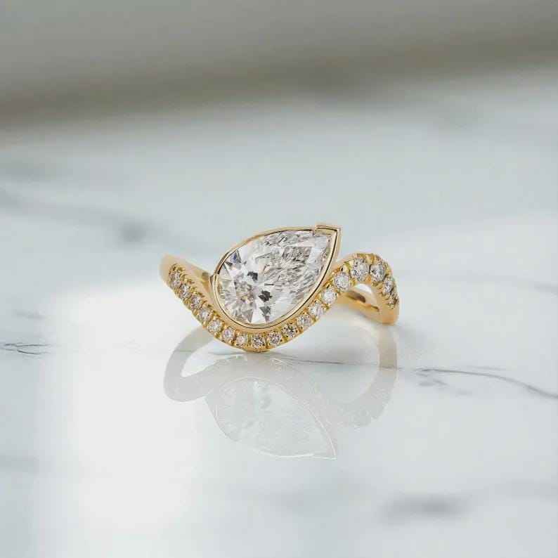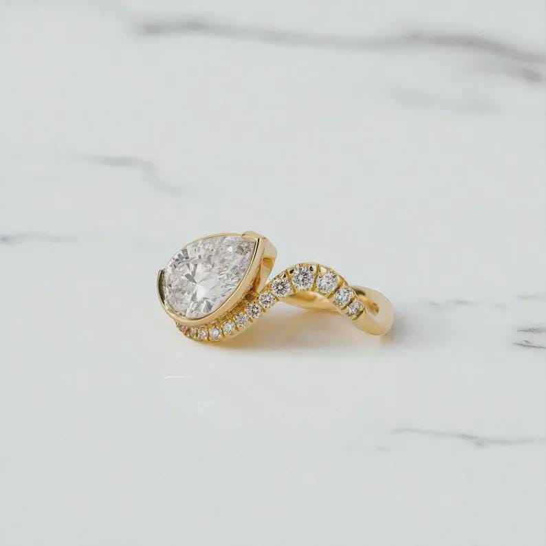 Pear Cut Diamond Promise Bypass Swirl Band Ring